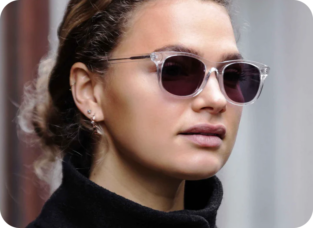 Odkryj designerskie okulary przeciwsłoneczne z certyfikatem UV400 CE w eleganckim skandynawskim designie.